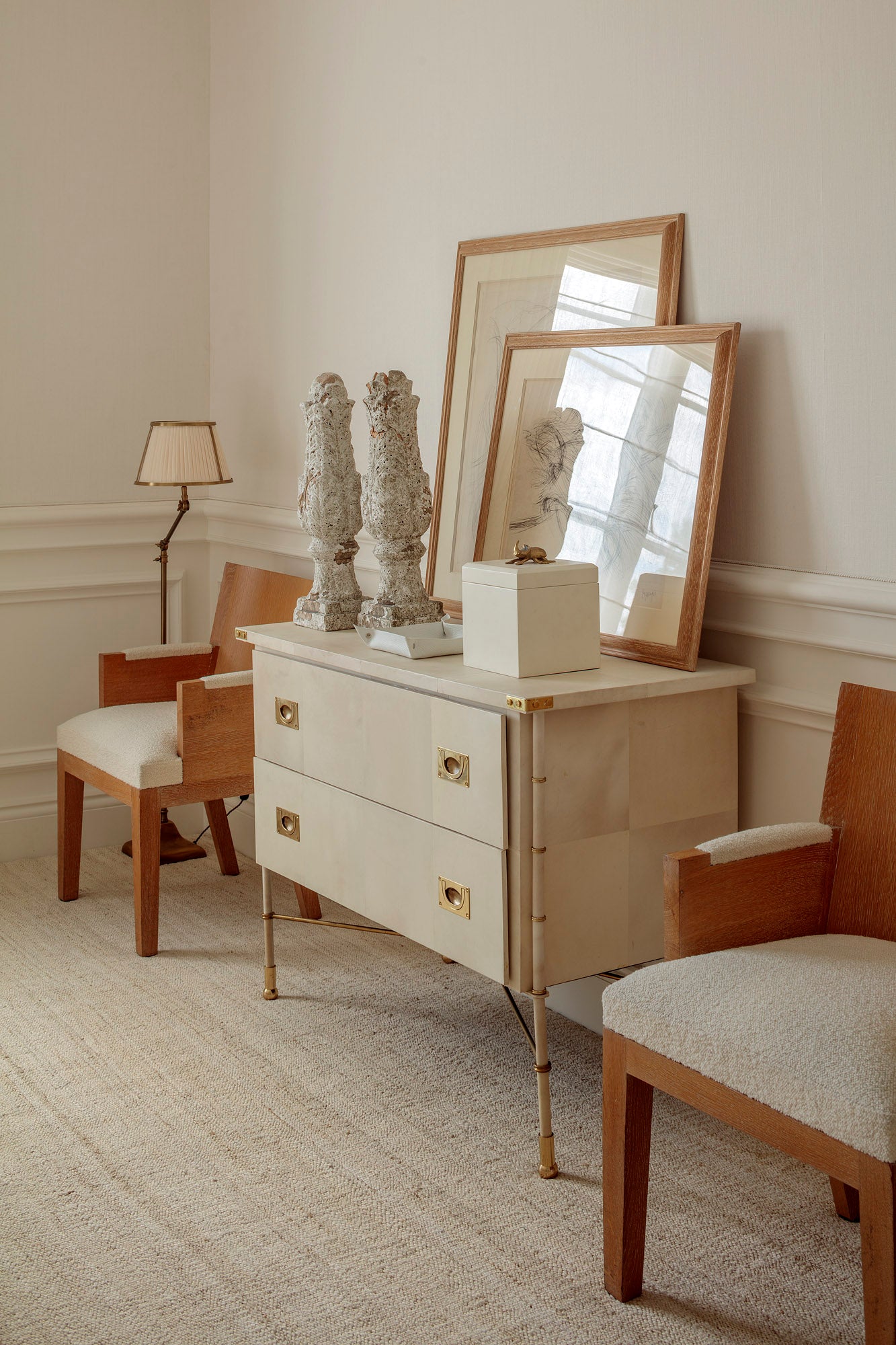 What once had, in Philip’s words, “the look and feel of a German clinic—grey, chrome, and harsh downlights” is now a hushed haven that mirrors its leafy Regent’s Park setting. Behind the calm palette of whites, creams, and caramels lies a playful wit, woven into every room. “I always like to include something unexpected that brings a smile,” he says.