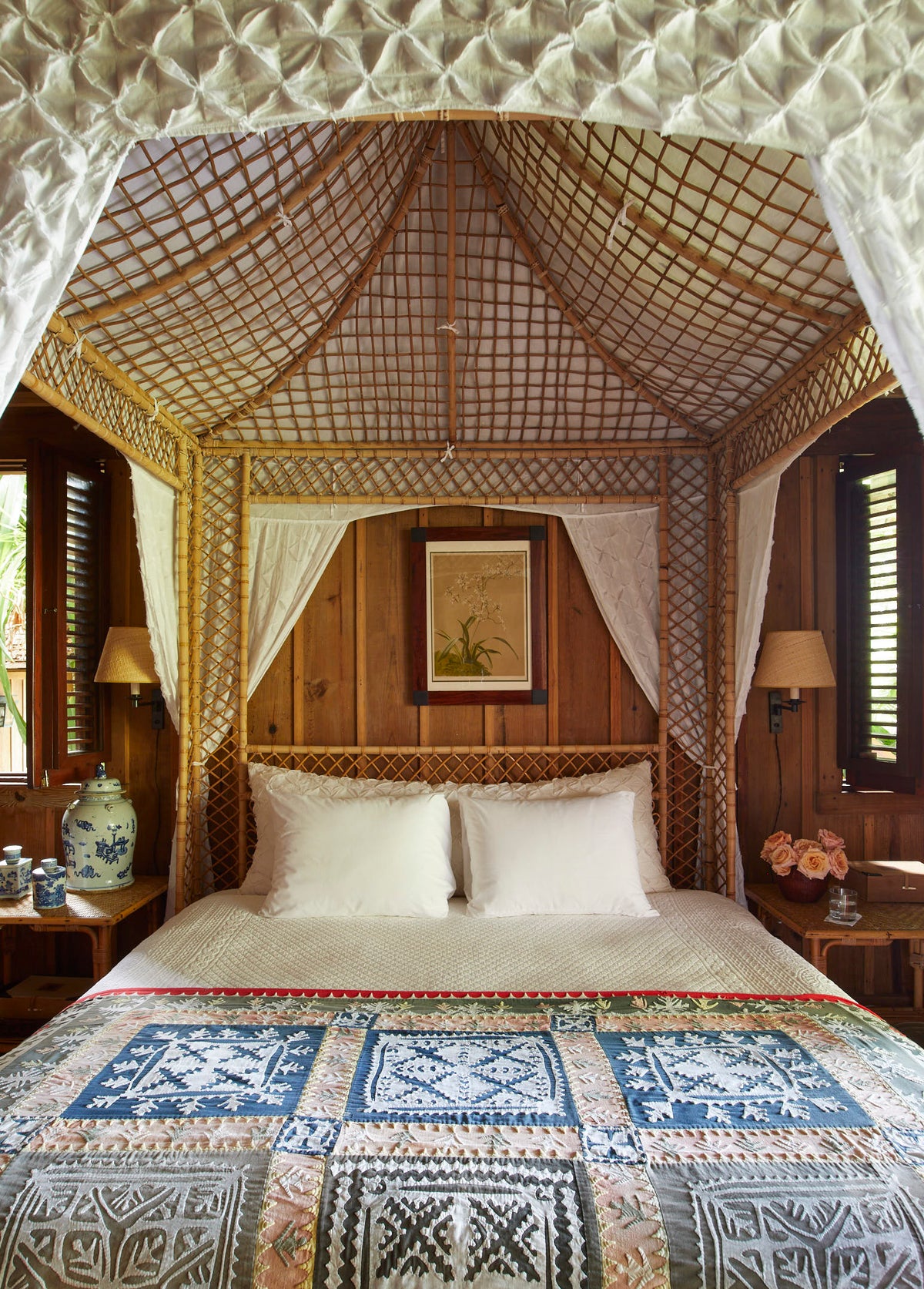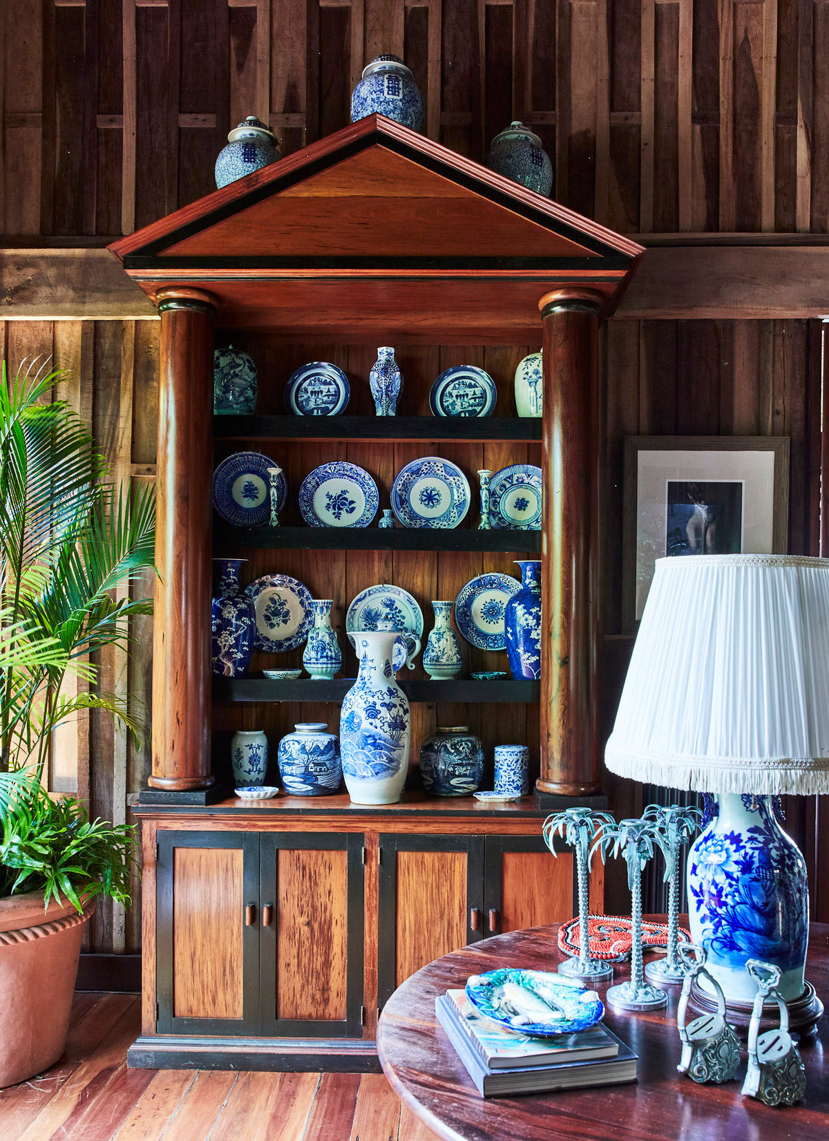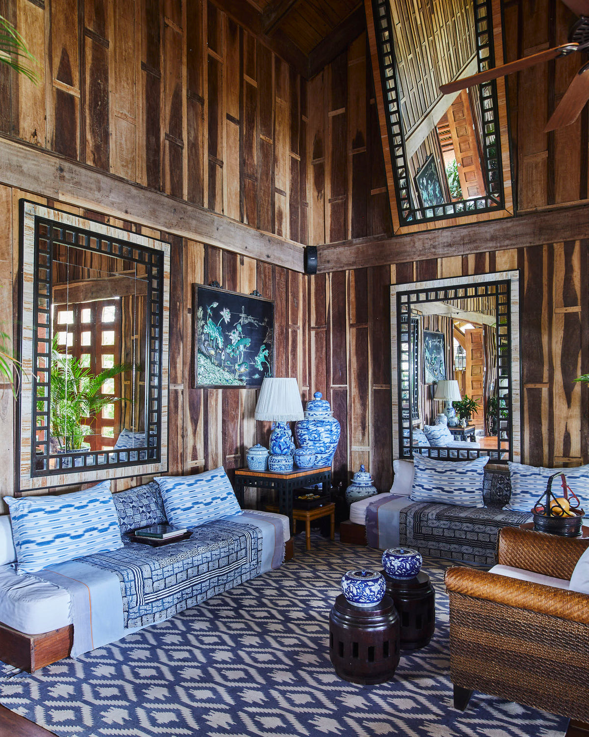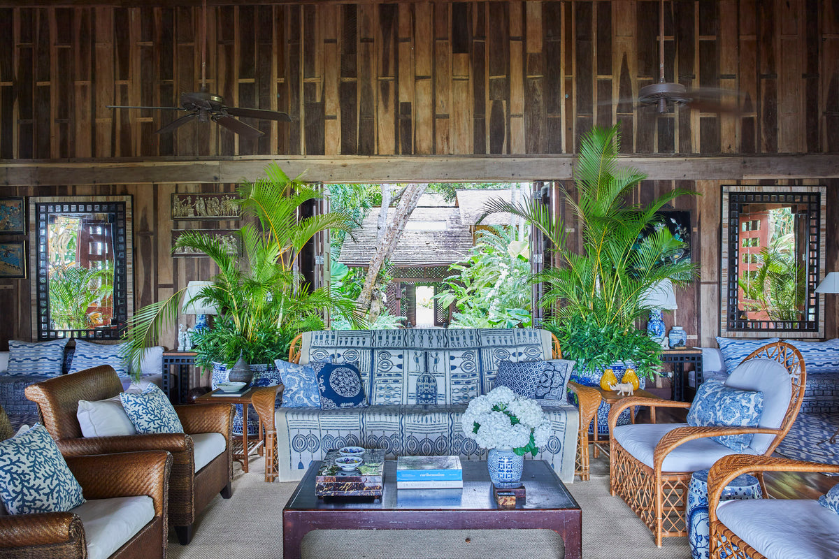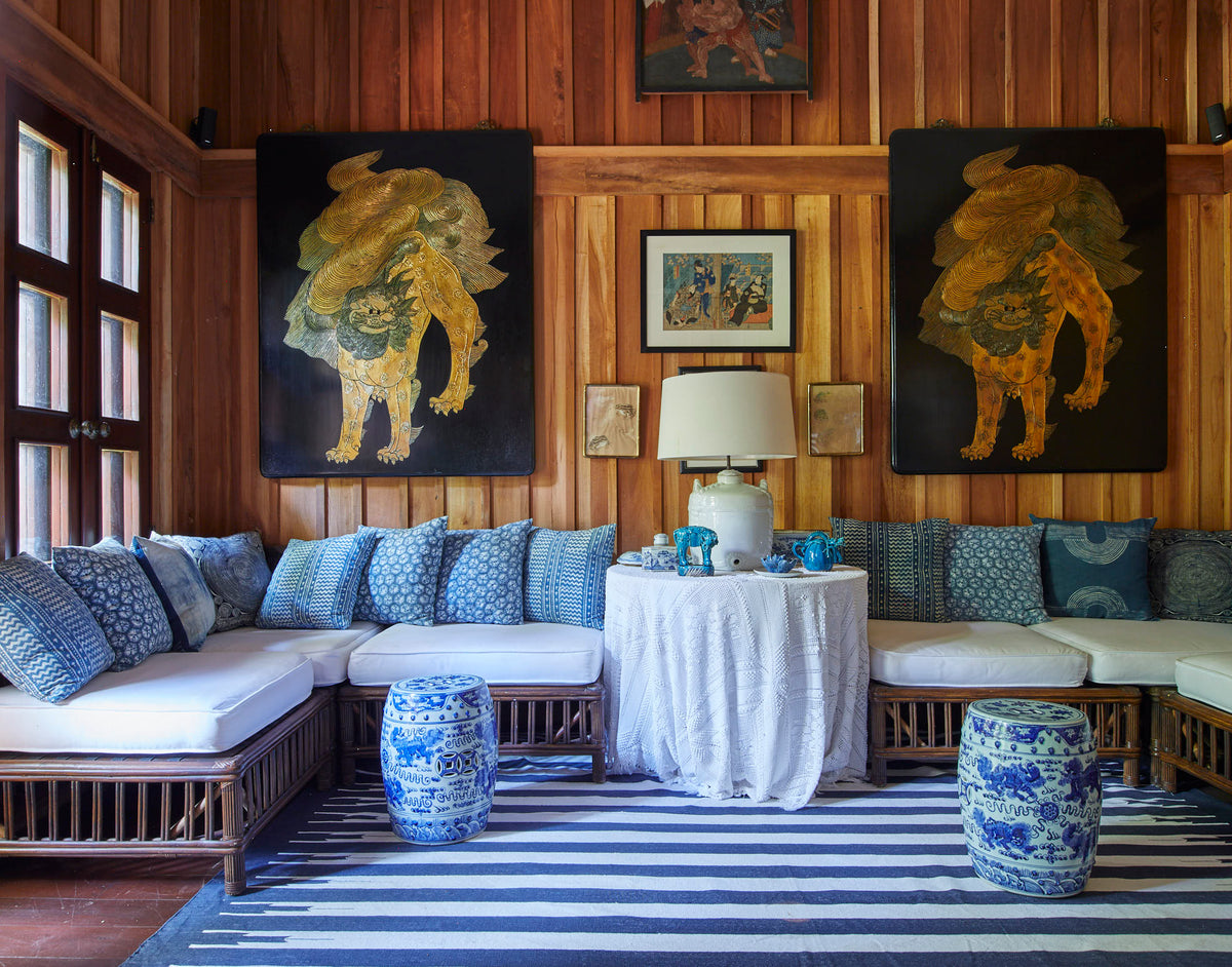 Originally created by Oscar de la Renta, the Balinese-style house has since had a few different owners, not all as enamored with it as I was. However, I was very fortunate that my friends and I agreed from the start how to bring this “Sleeping Beauty” back to life. I feel that I acted as much like a plastic surgeon than as a designer. I was fully intent on maintaining and reviving the beauty and the glamour of the original estate, whilst building several additional houses to enhance the compound without destroying its remarkable legacy. The new structures, which serve as guesthouses for family and friends, were designed in complementary yet distinctive styles, all with a focus on low-key but luxurious comfort.