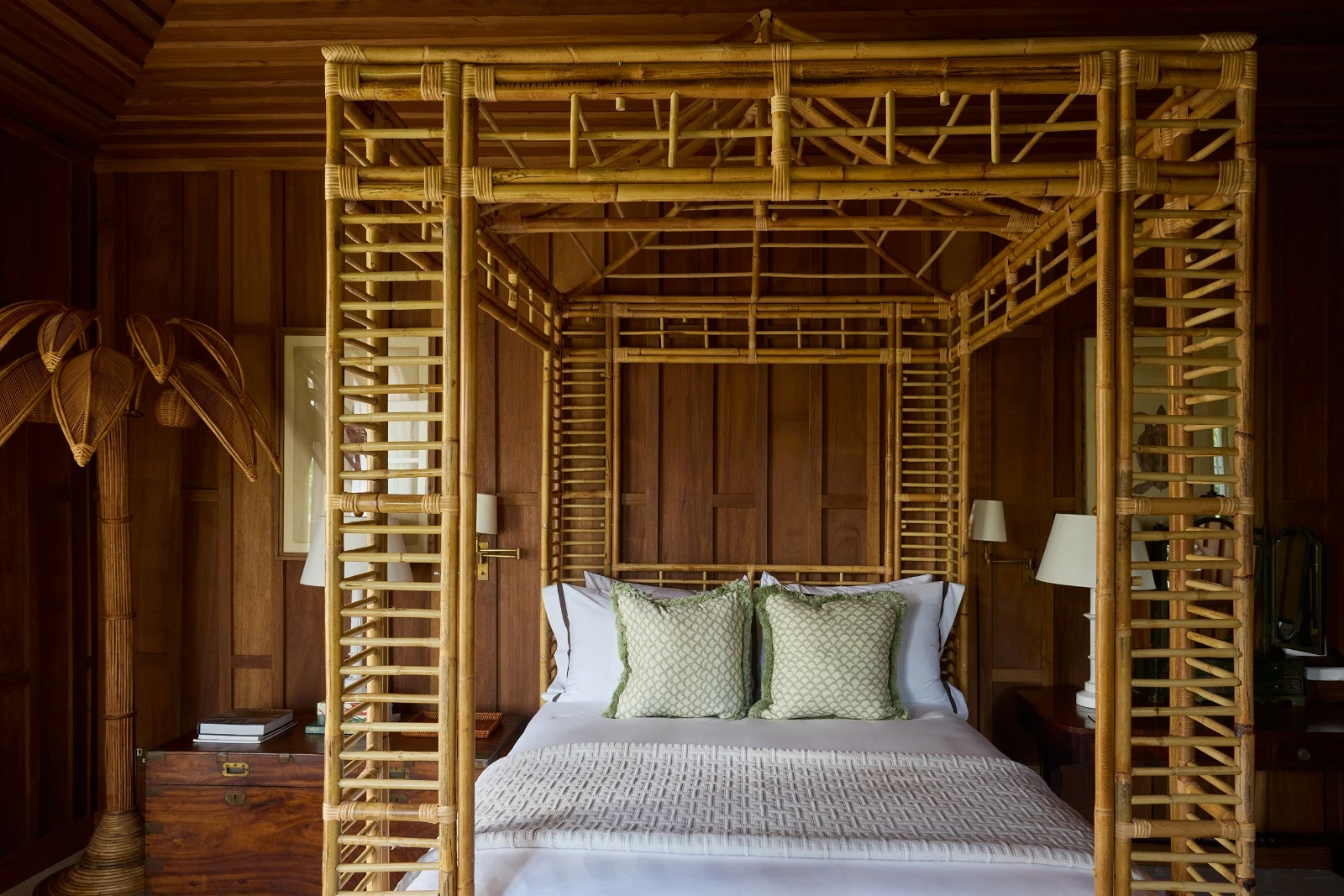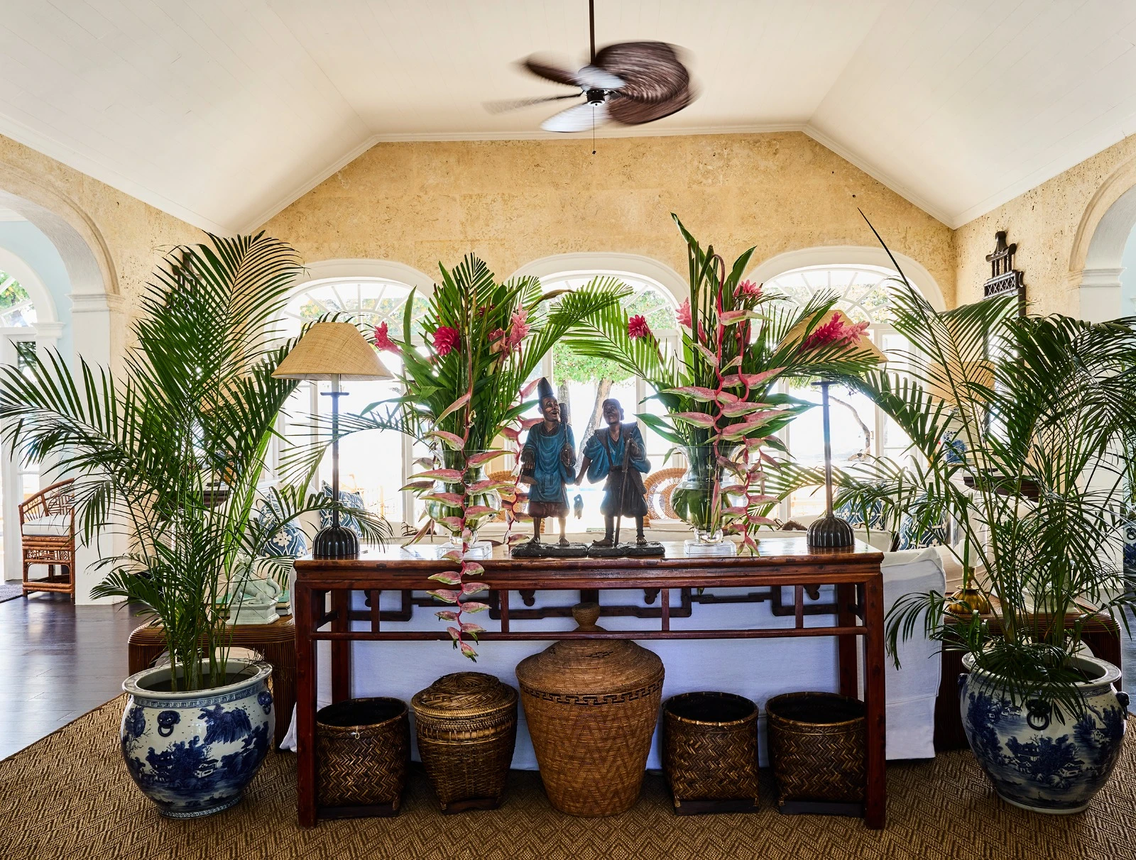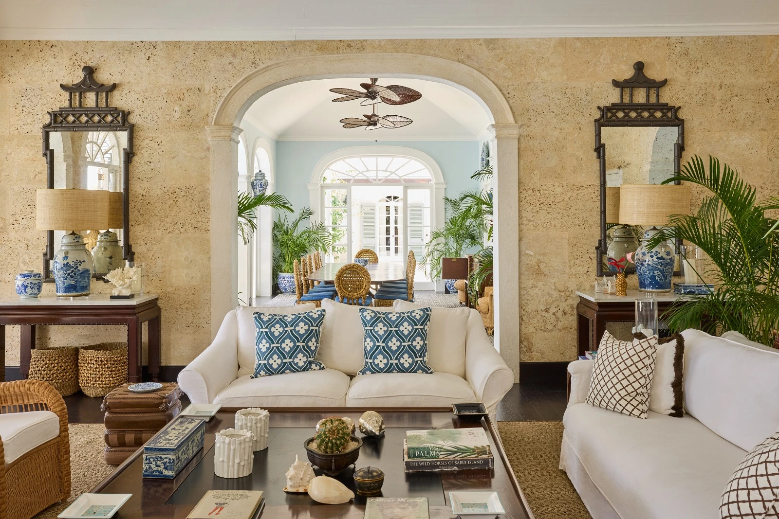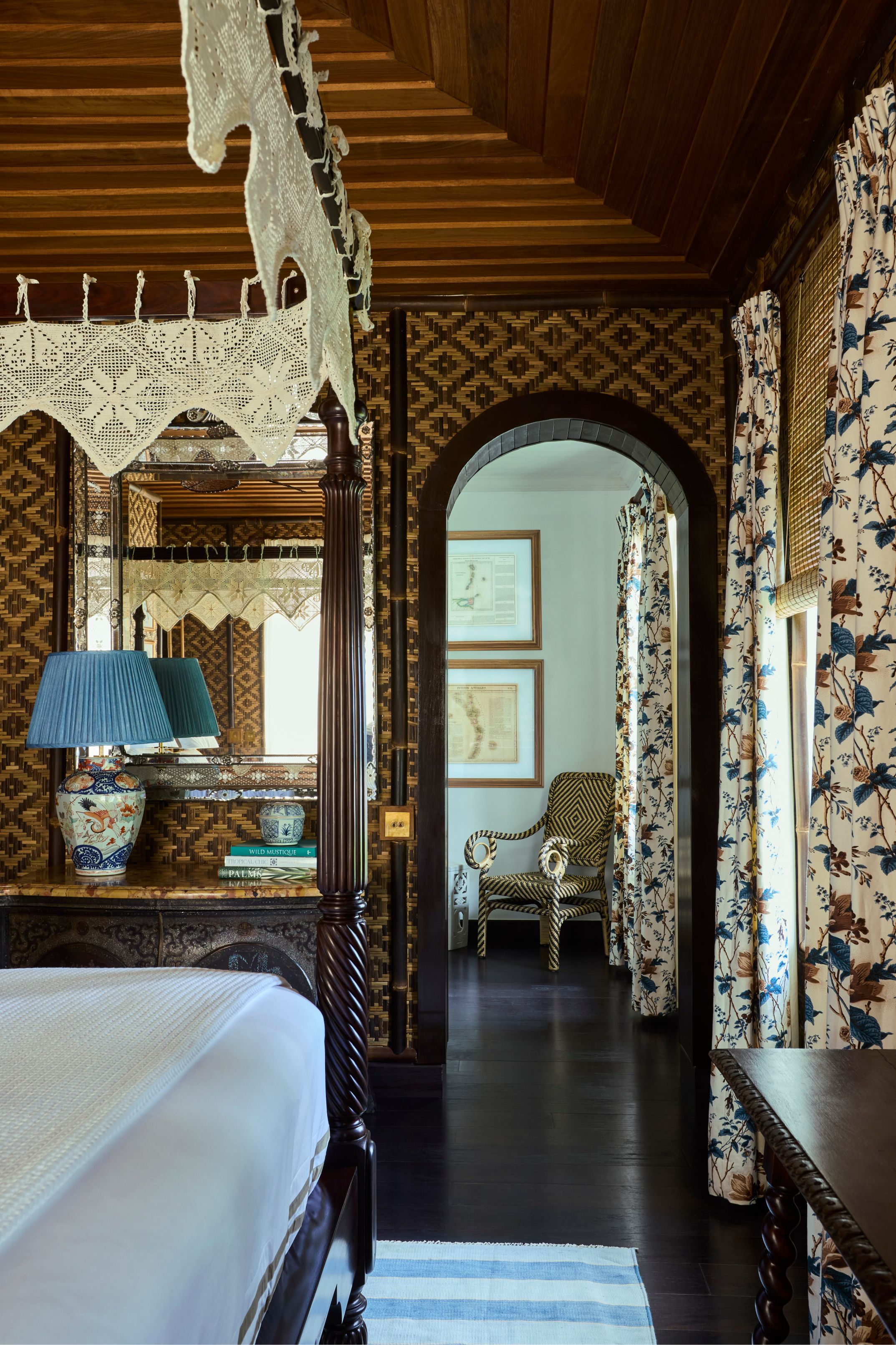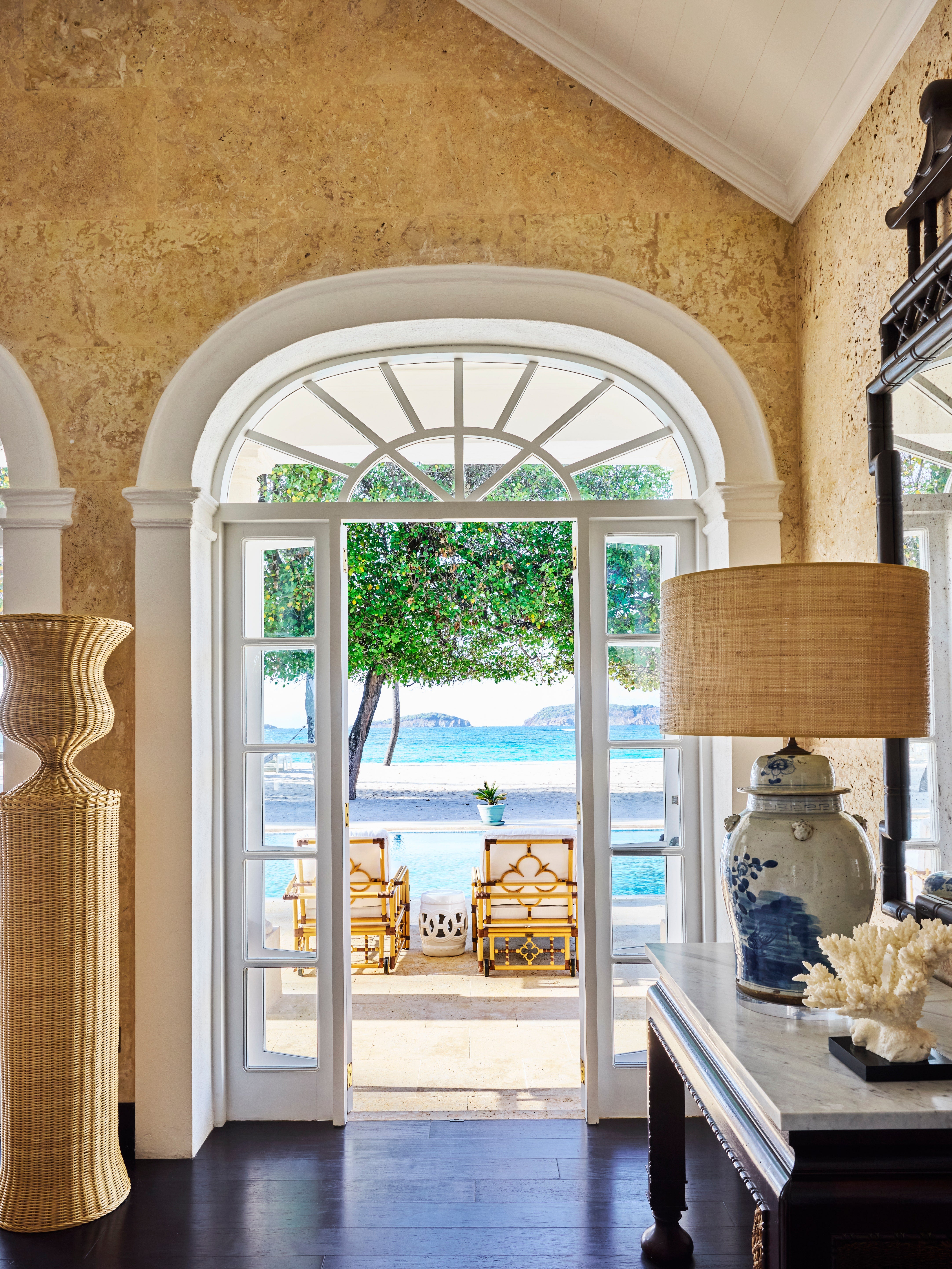 A recently designed home by Philip Vergeylen and our Design Studio on the glamorous island of Mustique, honours the island’s rich legacy of classic design. Located close to the sea, the house blends Mustique’s signature architectural style—with its pavilions and coral stone accents—with unique details, such as rattan furniture and antique pieces. The interior, adorned with chinoiserie, mirrors, and a seamless indoor-outdoor flow, captures the island’s glamorous heritage while embodying the owner’s passion for classic design. The designers turned the property into a six-bedroom sanctuary that embraces Mustique’s vibrant aesthetic. Each bedroom features a carefully curated mix of patterns, furnishings, and decor, which Philip Vergeylen believes infuses the space with personality and uniqueness.