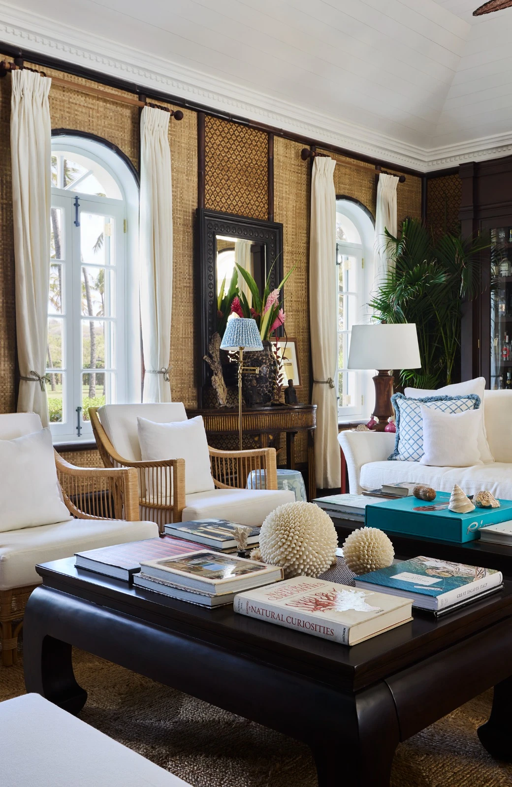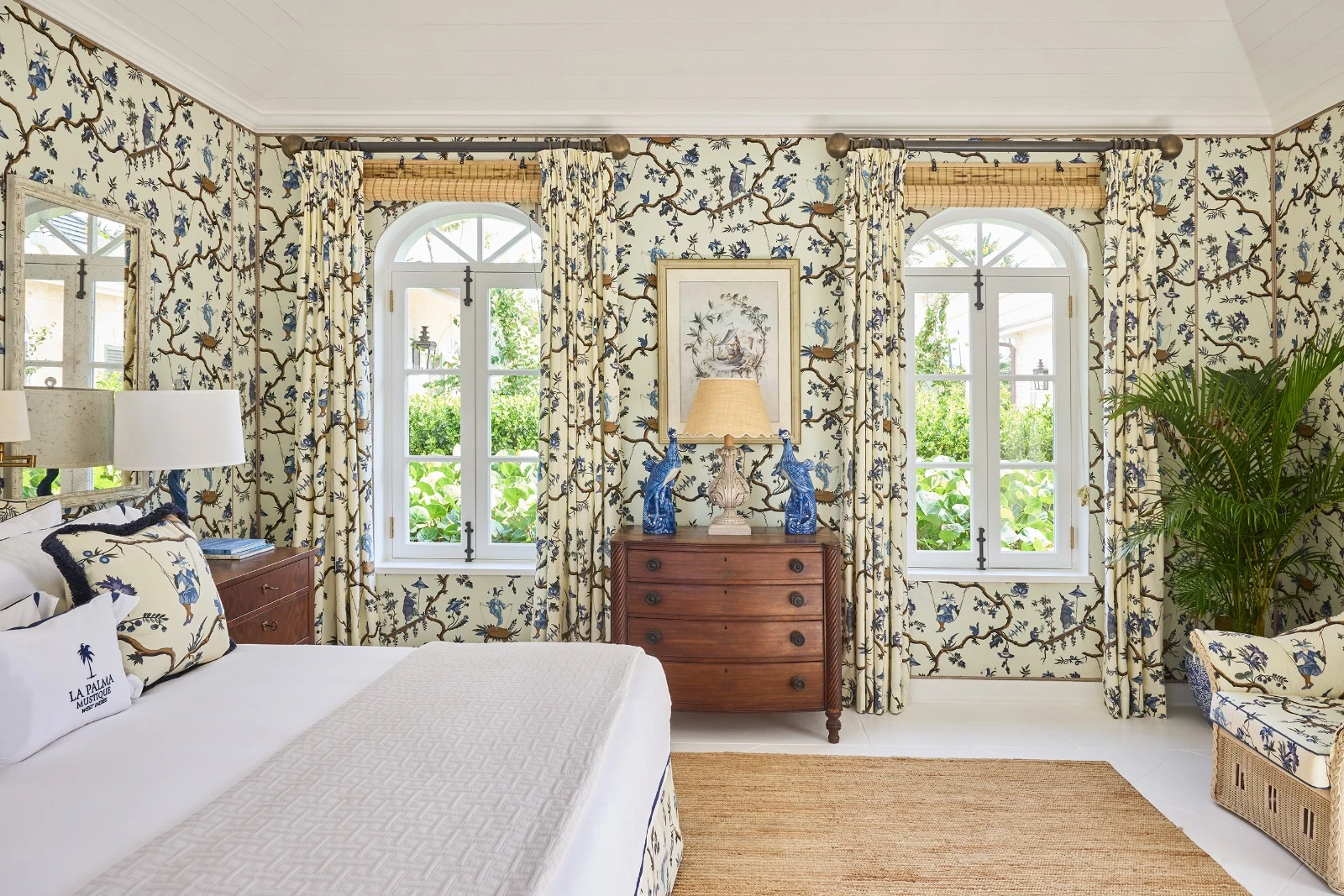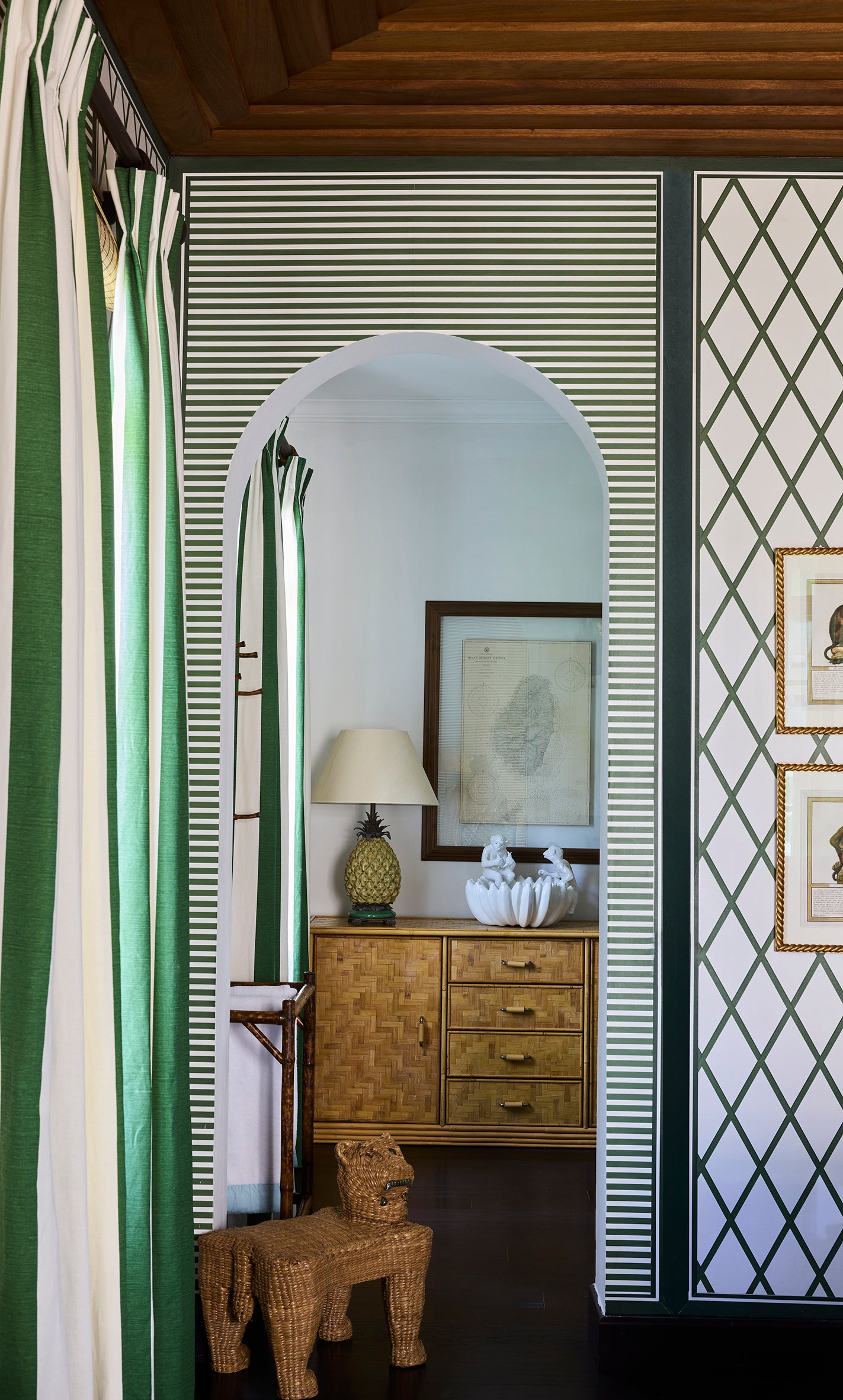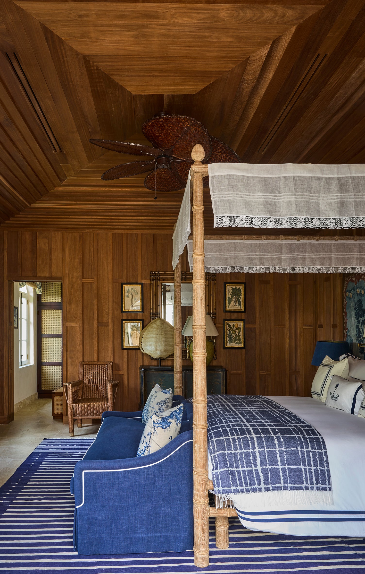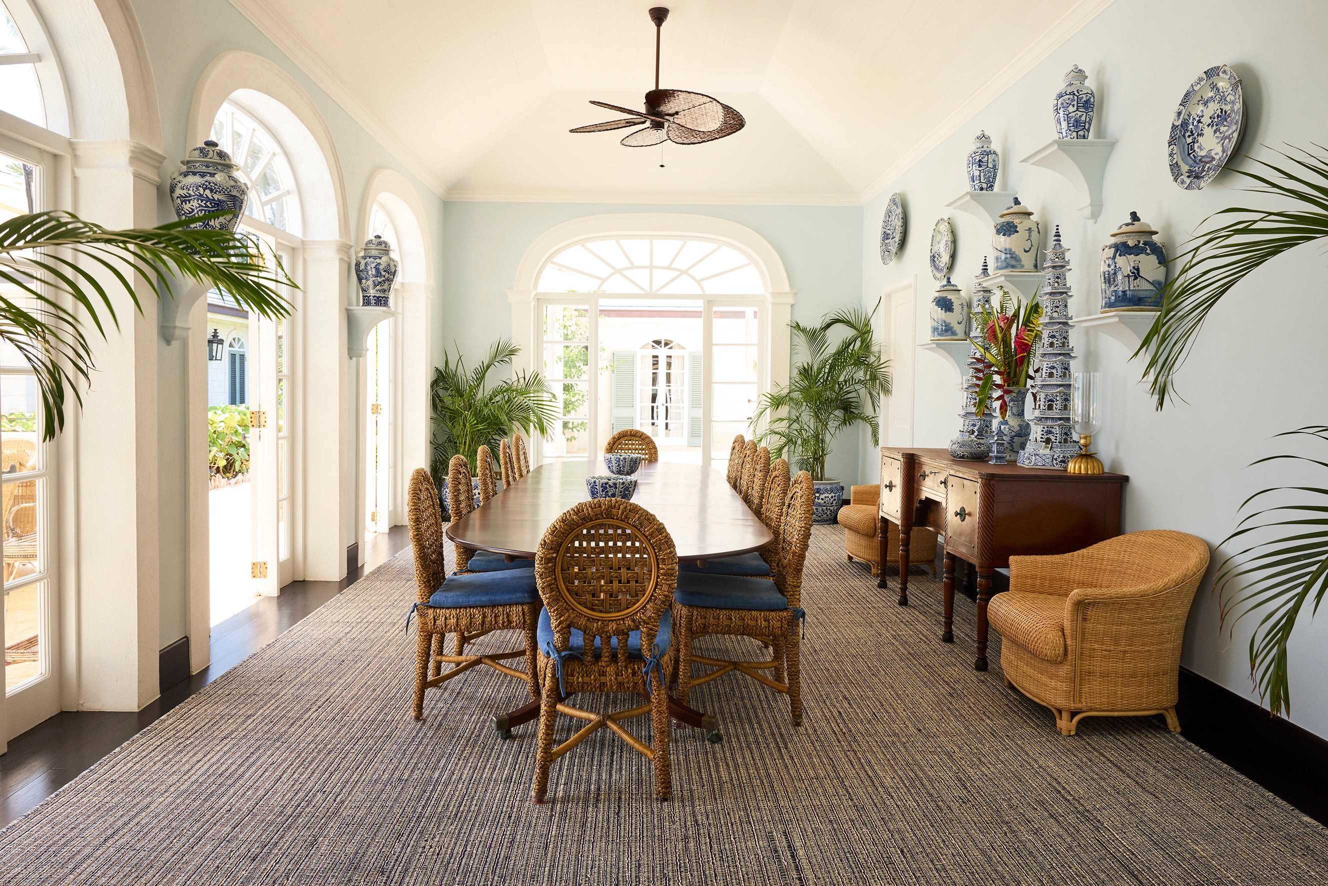 A recently designed home by Philip Vergeylen and our Design Studio on the glamorous island of Mustique, honours the island’s rich legacy of classic design. Located close to the sea, the house blends Mustique’s signature architectural style—with its pavilions and coral stone accents—with unique details, such as rattan furniture and antique pieces. The interior, adorned with chinoiserie, mirrors, and a seamless indoor-outdoor flow, captures the island’s glamorous heritage while embodying the owner’s passion for classic design. The designers turned the property into a six-bedroom sanctuary that embraces Mustique’s vibrant aesthetic. Each bedroom features a carefully curated mix of patterns, furnishings, and decor, which Philip Vergeylen believes infuses the space with personality and uniqueness.