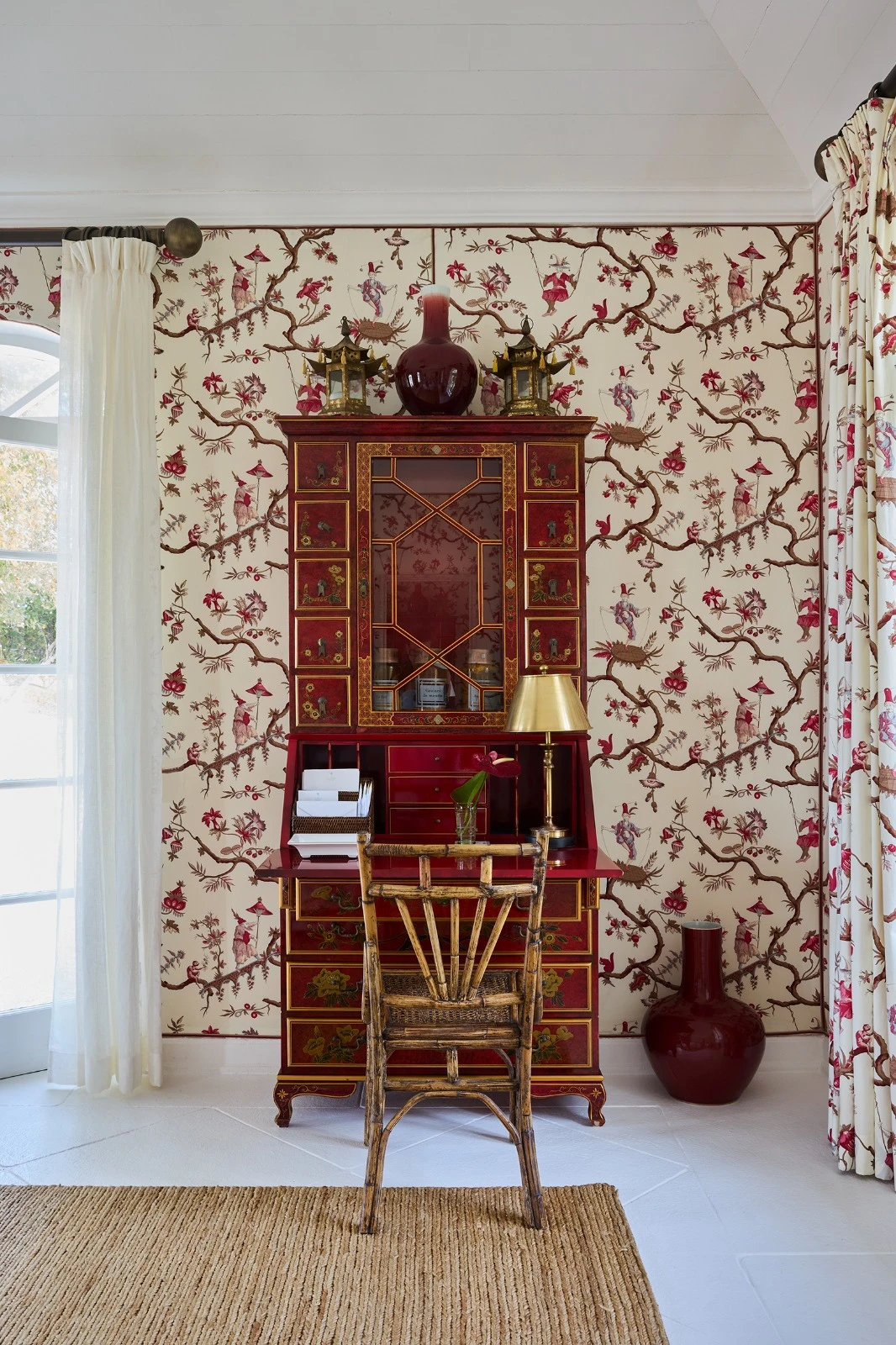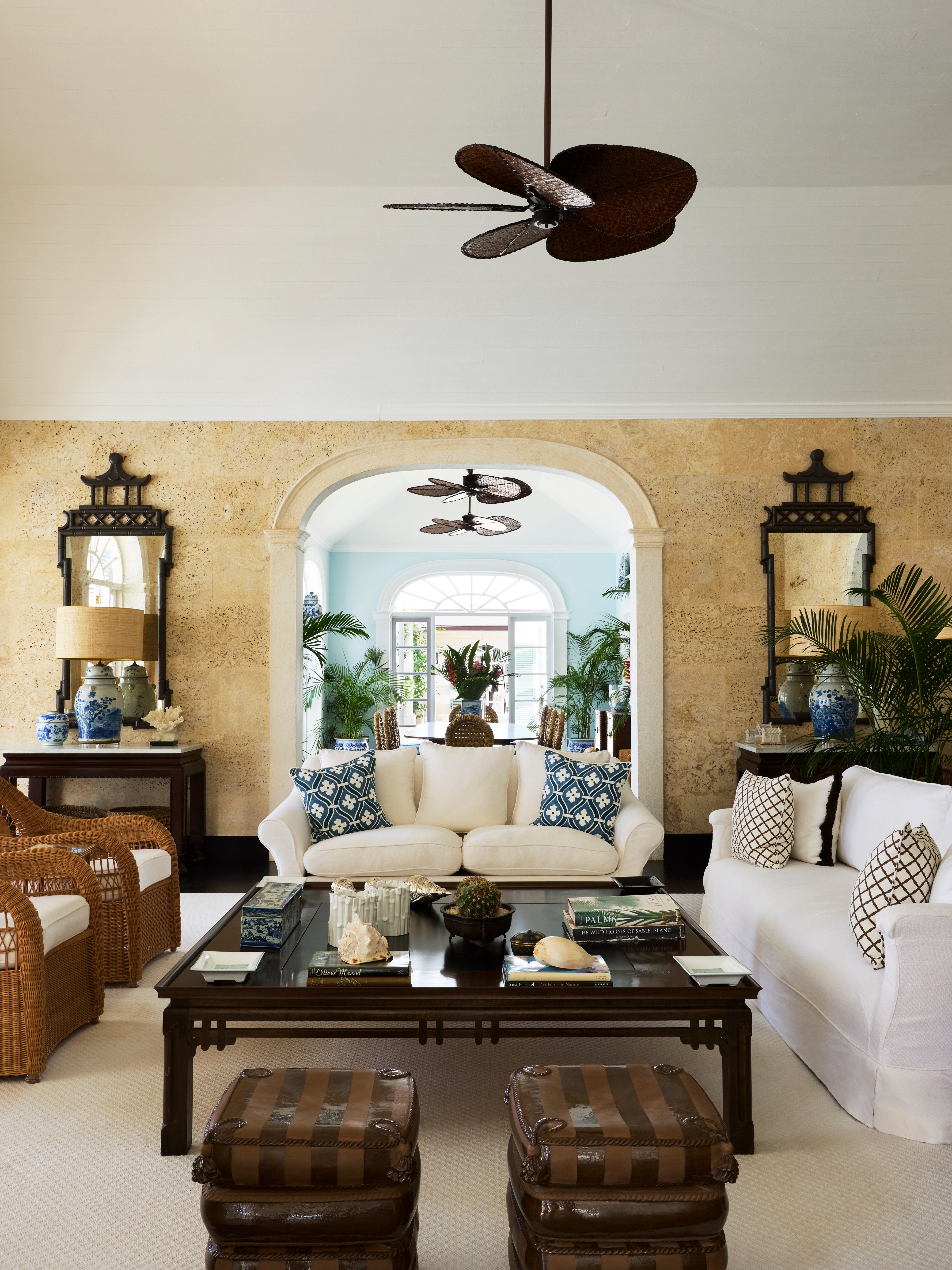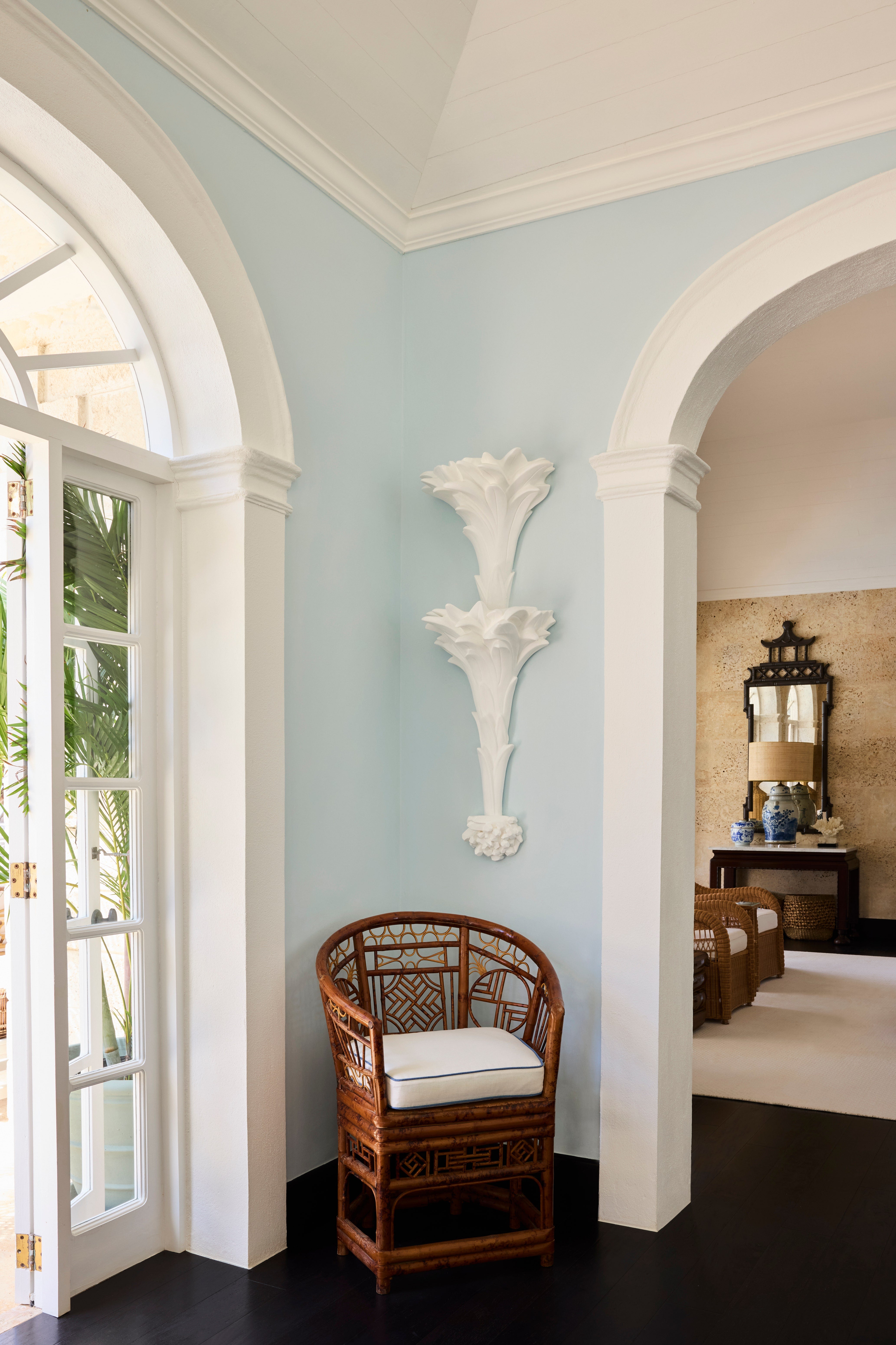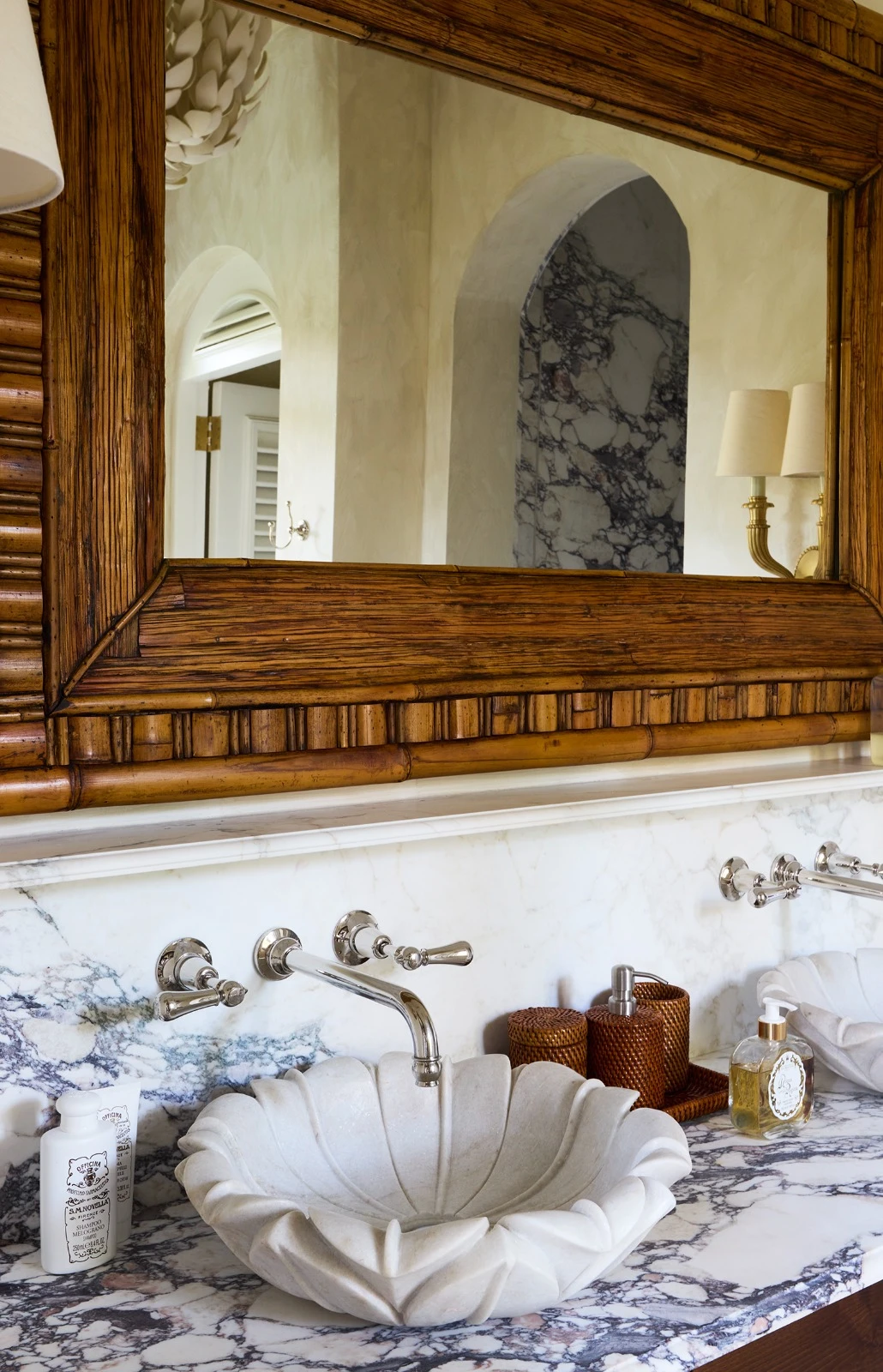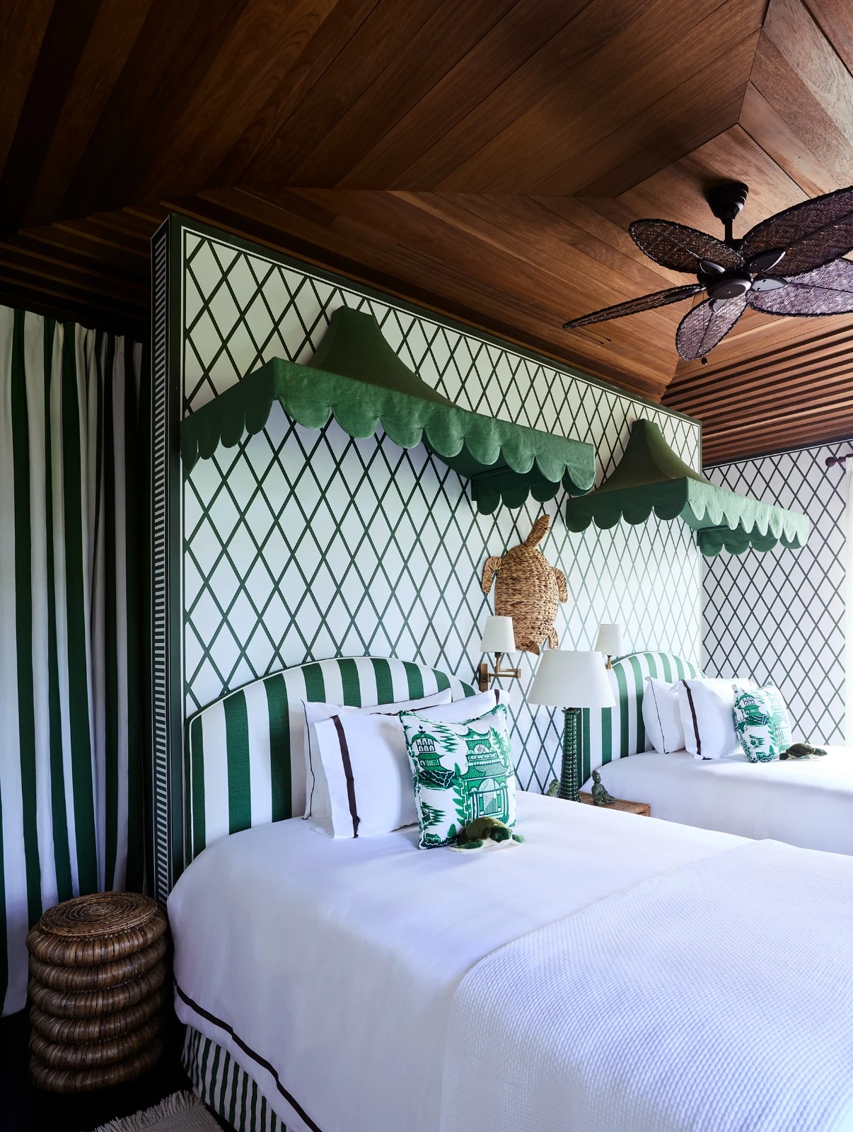 A recently designed home by Philip Vergeylen and our Design Studio on the glamorous island of Mustique, honours the island’s rich legacy of classic design. Located close to the sea, the house blends Mustique’s signature architectural style—with its pavilions and coral stone accents—with unique details, such as rattan furniture and antique pieces. The interior, adorned with chinoiserie, mirrors, and a seamless indoor-outdoor flow, captures the island’s glamorous heritage while embodying the owner’s passion for classic design. The designers turned the property into a six-bedroom sanctuary that embraces Mustique’s vibrant aesthetic. Each bedroom features a carefully curated mix of patterns, furnishings, and decor, which Philip Vergeylen believes infuses the space with personality and uniqueness.