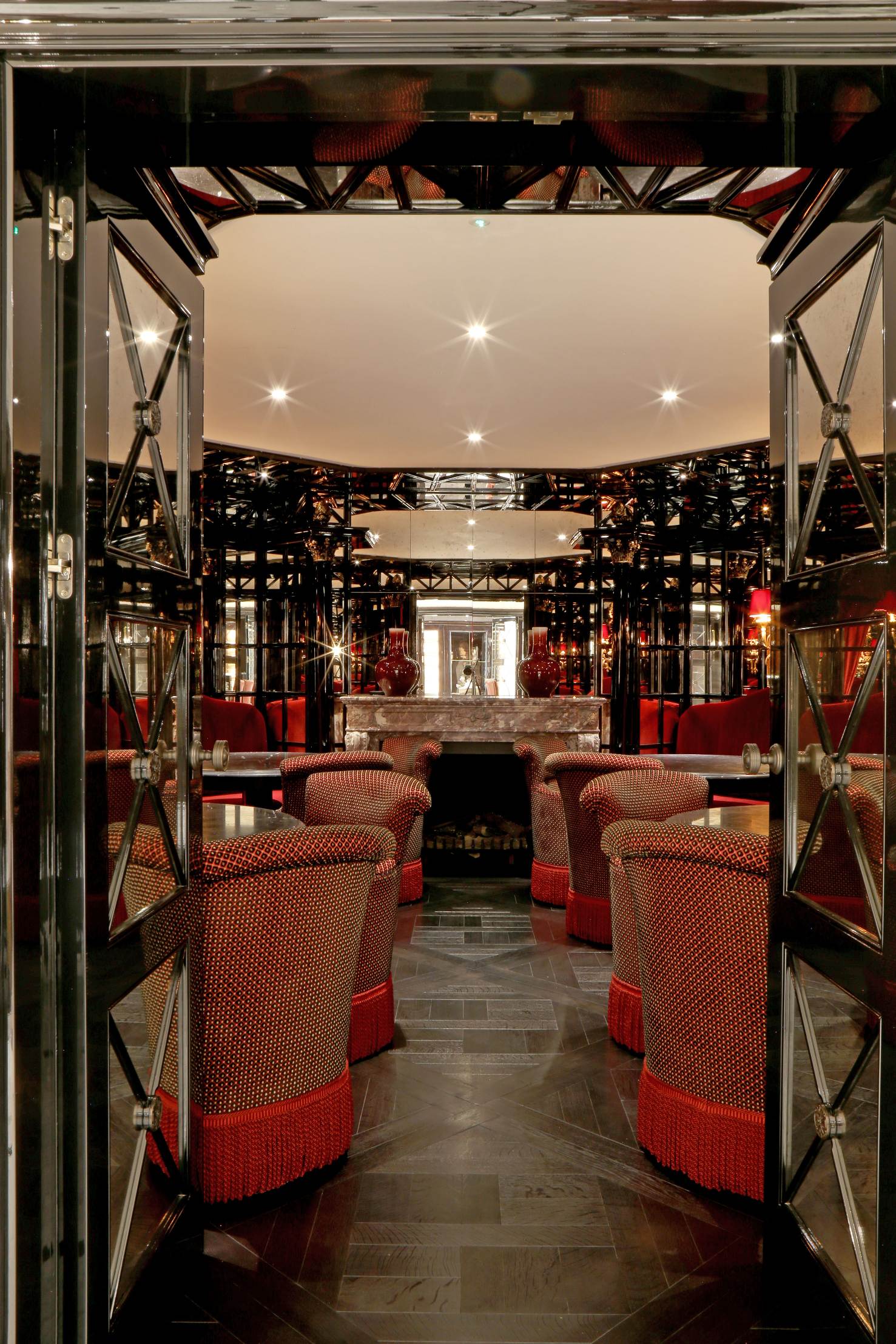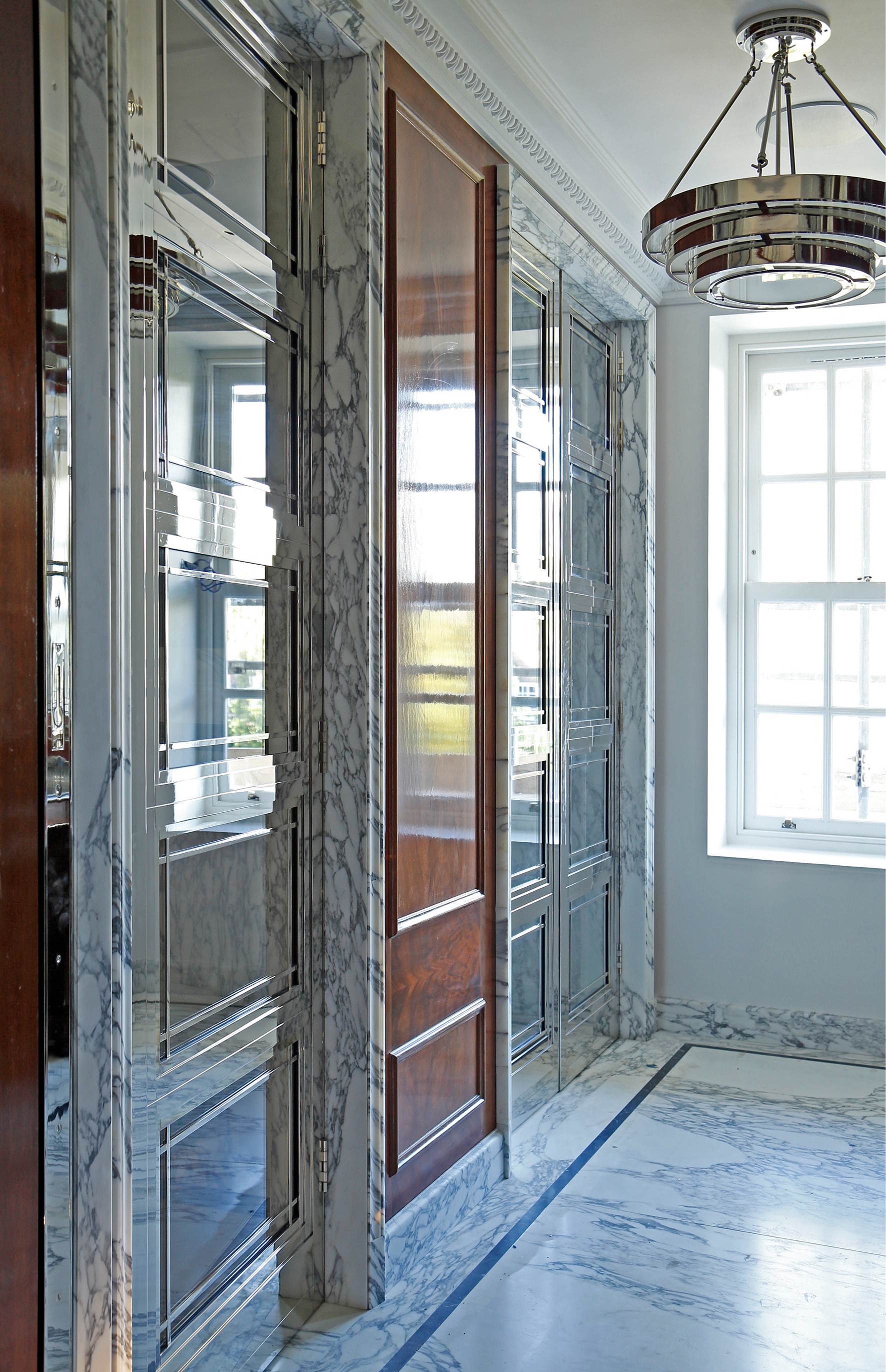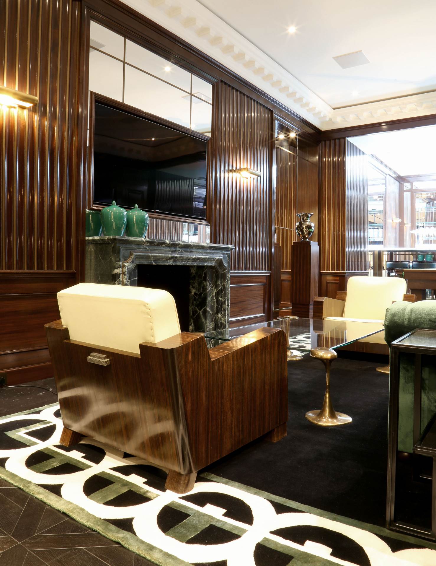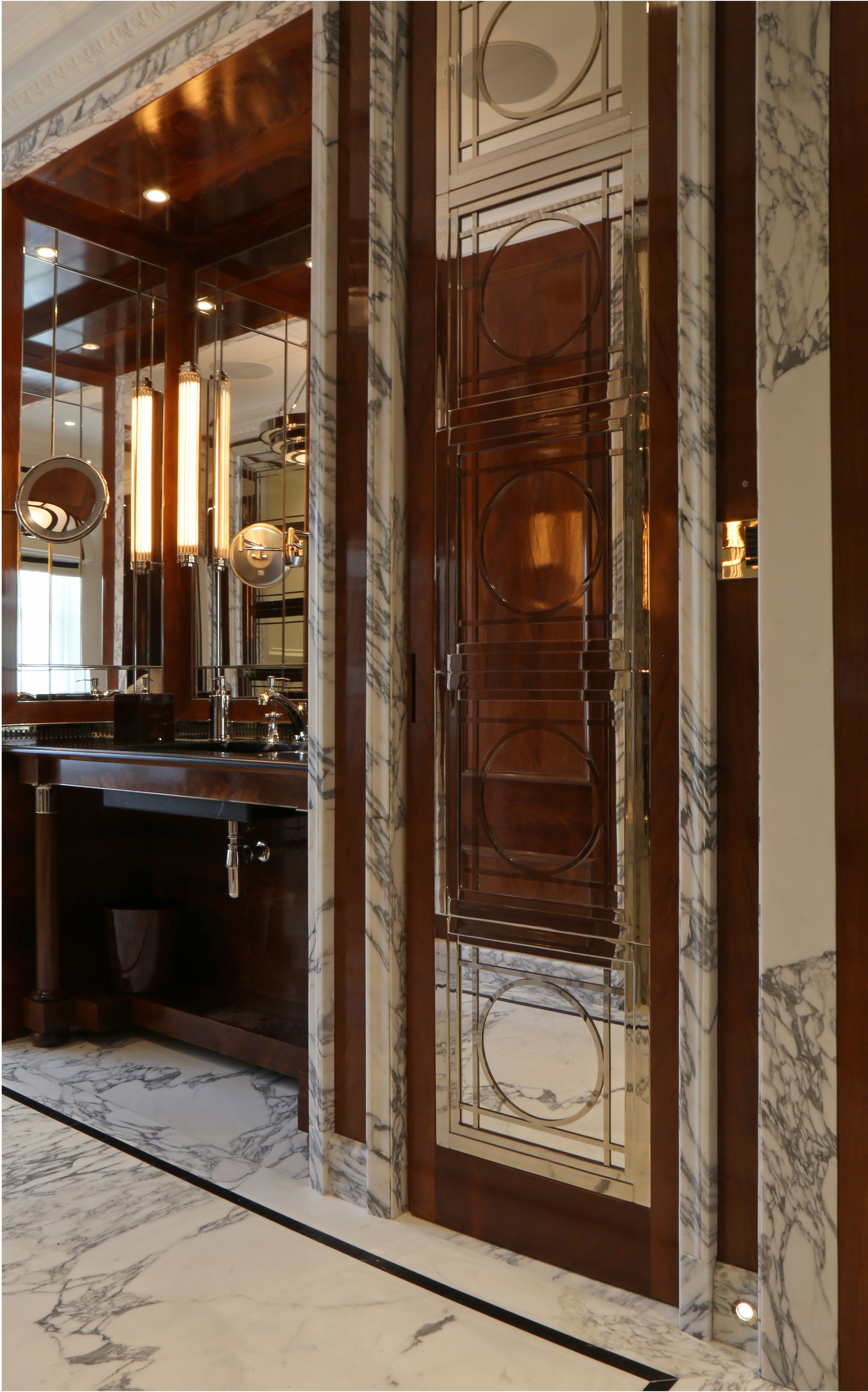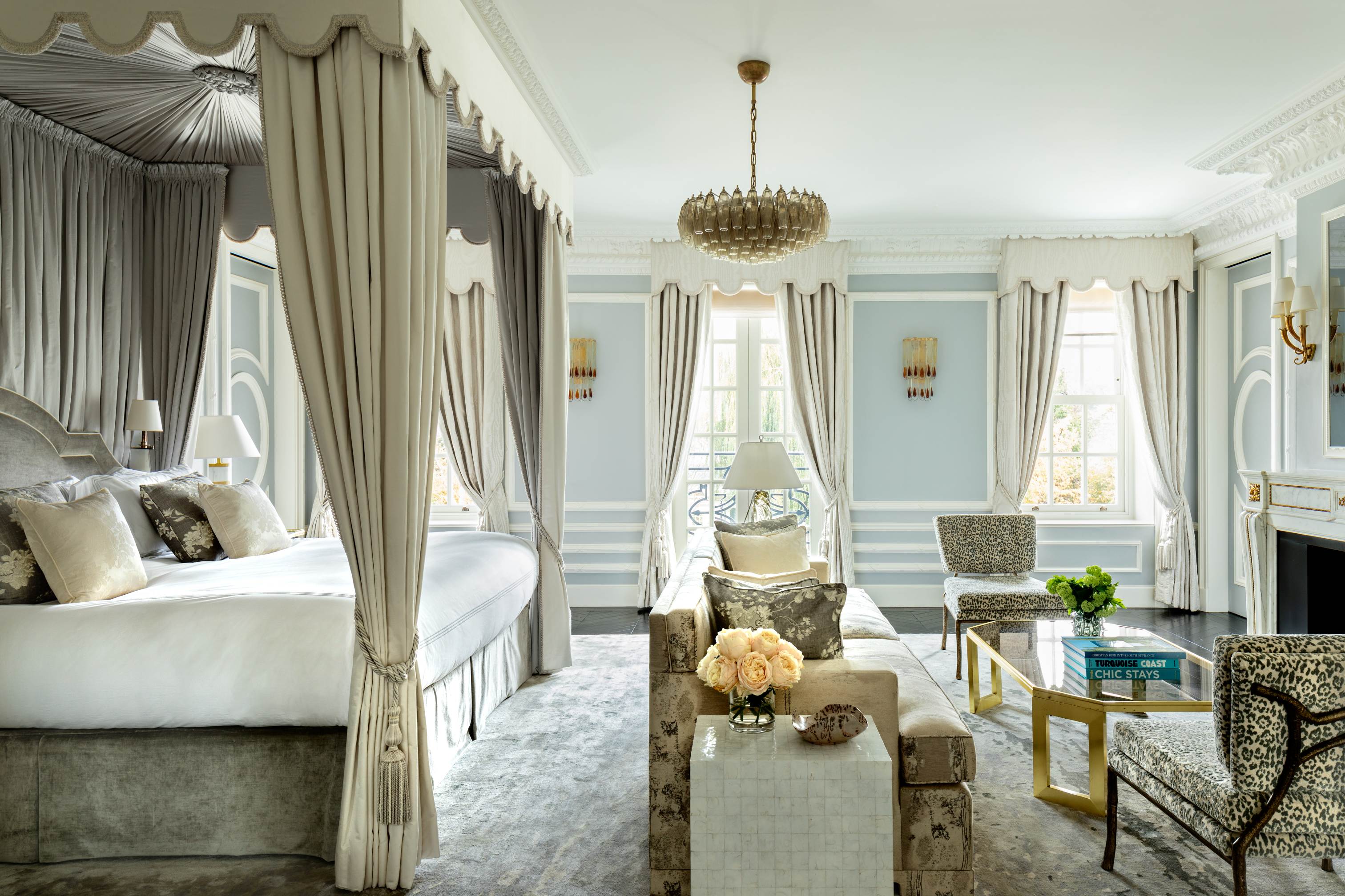 The owners of this magnificent property—a Georgian-style mansion that is one of London’s largest private residences built during the past decade—commissioned Philip Vergeylen and our Design Studio to create interiors that would reflect the grandeur of the estate. With a design brief for “more-is-more” opulence, the Studio focused on luxurious materials and exquisite craftsmanship to create bold, dramatic room settings with sumptuous details. A myriad of sources provided inspiration—the sun-splashed breakfast room recalls the pale green palette of the patisserie Ladurée; a Hong Kong restaurant created by Sir David Tang sparked the Chinese Art Deco–style games room; the library, inset with Coromandel-and-gilt panels inspired by Coco Chanel’s iconic Rue Cambon apartment, is lacquered a deep aubergine, the client’s favourite colour; and one of the four dining rooms references the deep emerald green of couturier Hubert de Givenchy’s storied drawing room in Paris. The luxurious bedroom suites feature dazzling bathrooms, tufted velvet sofas beckon in the screening room, and the pristine indoor pool is steps from an elegant sitting area furnished in classic rattan and a crisp blue-and-white chinoiserie print.