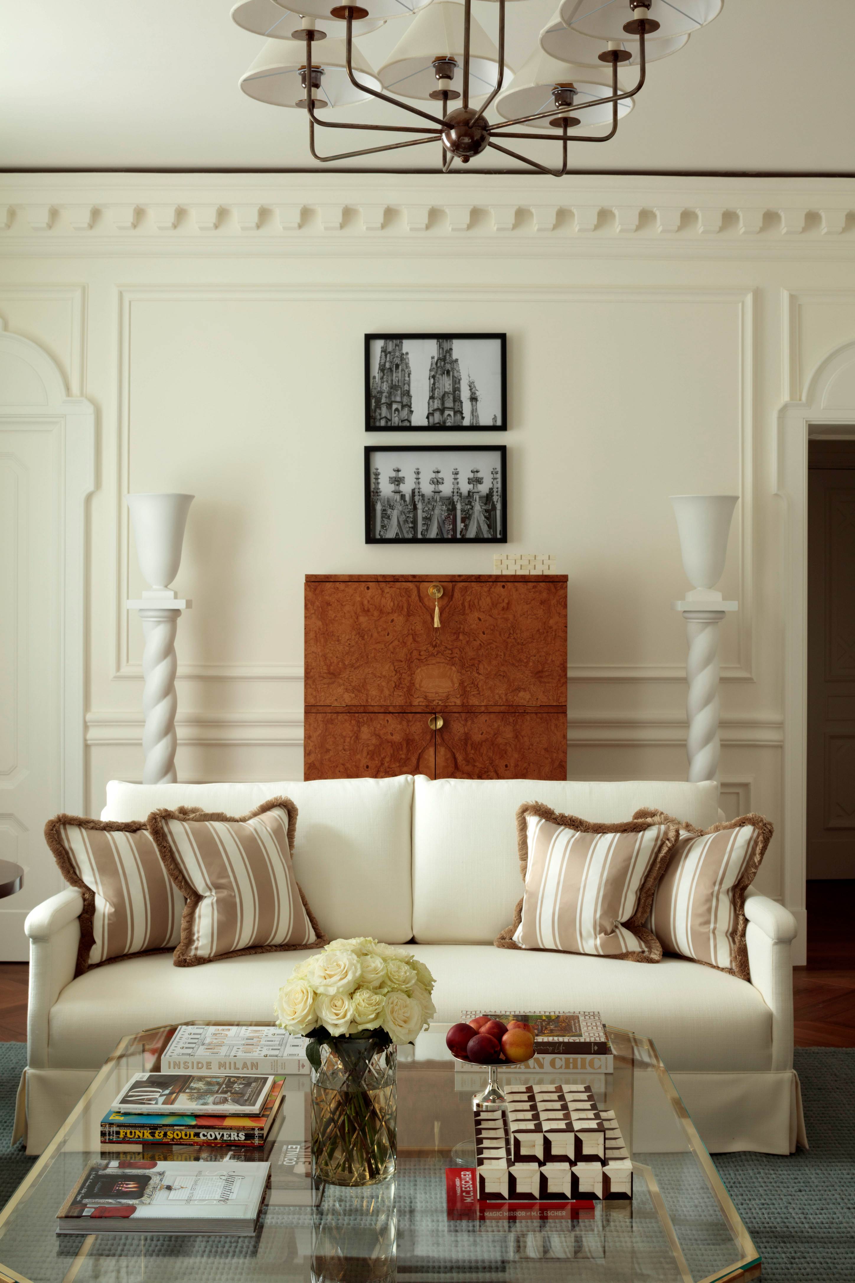 We are excited to introduce a new hospitality project by Philip Vergeylen, Paolo Moschino and our Design Studio, in collaboration with Olga Polizzi. Rocco Forte House in Milan is an exquisite 19th century Milanese palazzo located on Via Manzoni, on the corner of Via della Spiga, in the heart of the city’s most fashionable neighbourhood, Quadrilatero della Moda.It comprises a series of 11 luxury guest apartments, and facilities including a courtyard bistro and a future roof terrace bar. Since the project’s onset our comprehensive service capability ethos sensitively restored this beautiful building to its original splendour, offering guests unrivalled privacy, comfort and style set against the rich tapestry of Milan’s colourful history. The interiors blend Milanese elegance with the comfort of home, incorporating both classical and contemporary elements. The 19th-century building retains historical features like frescoes and stuccos, while modern touches, such as large glass windows and terraces, enhance the upper floor apartments. The design reflects Milan’s rich history while providing modern luxury and comfort.