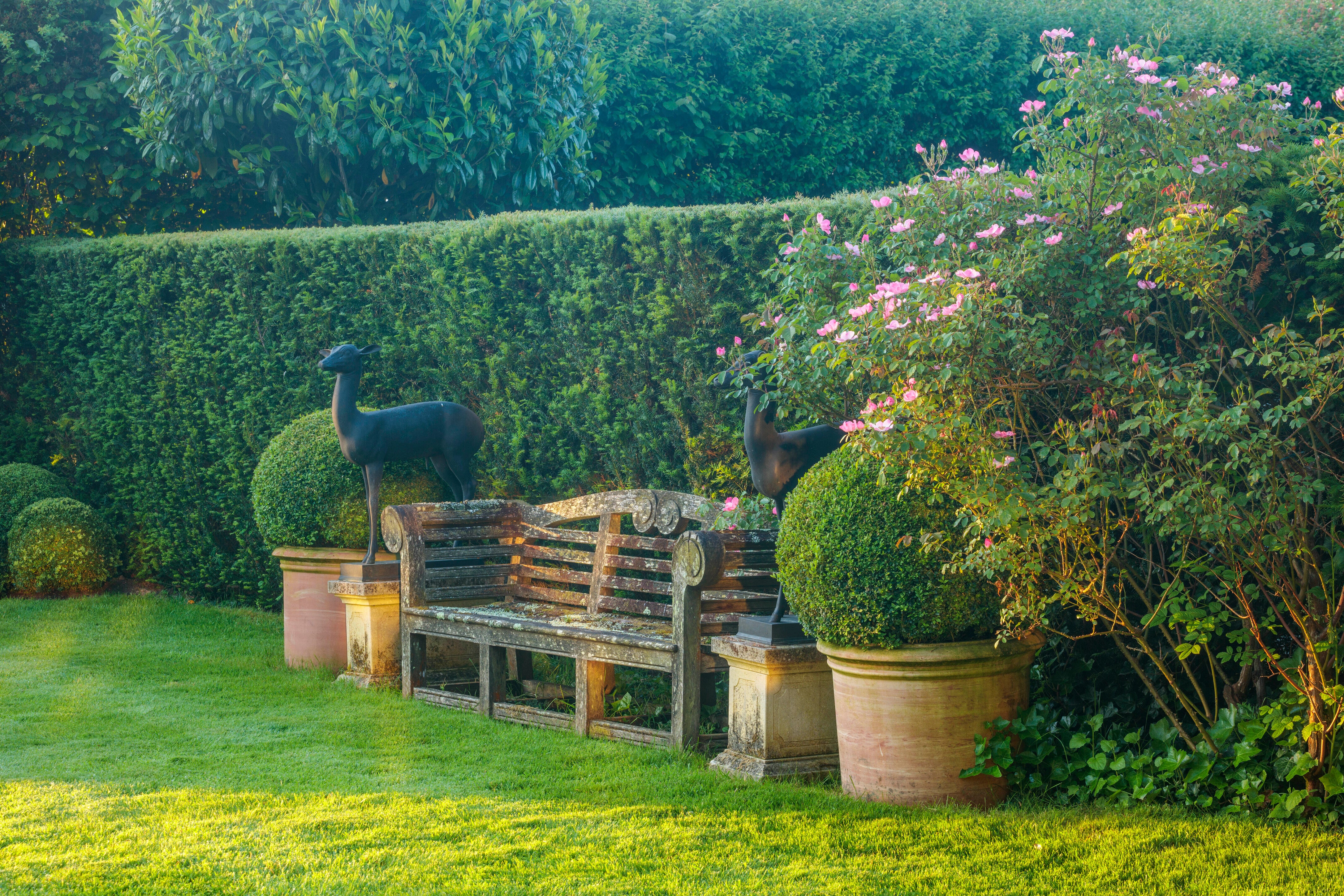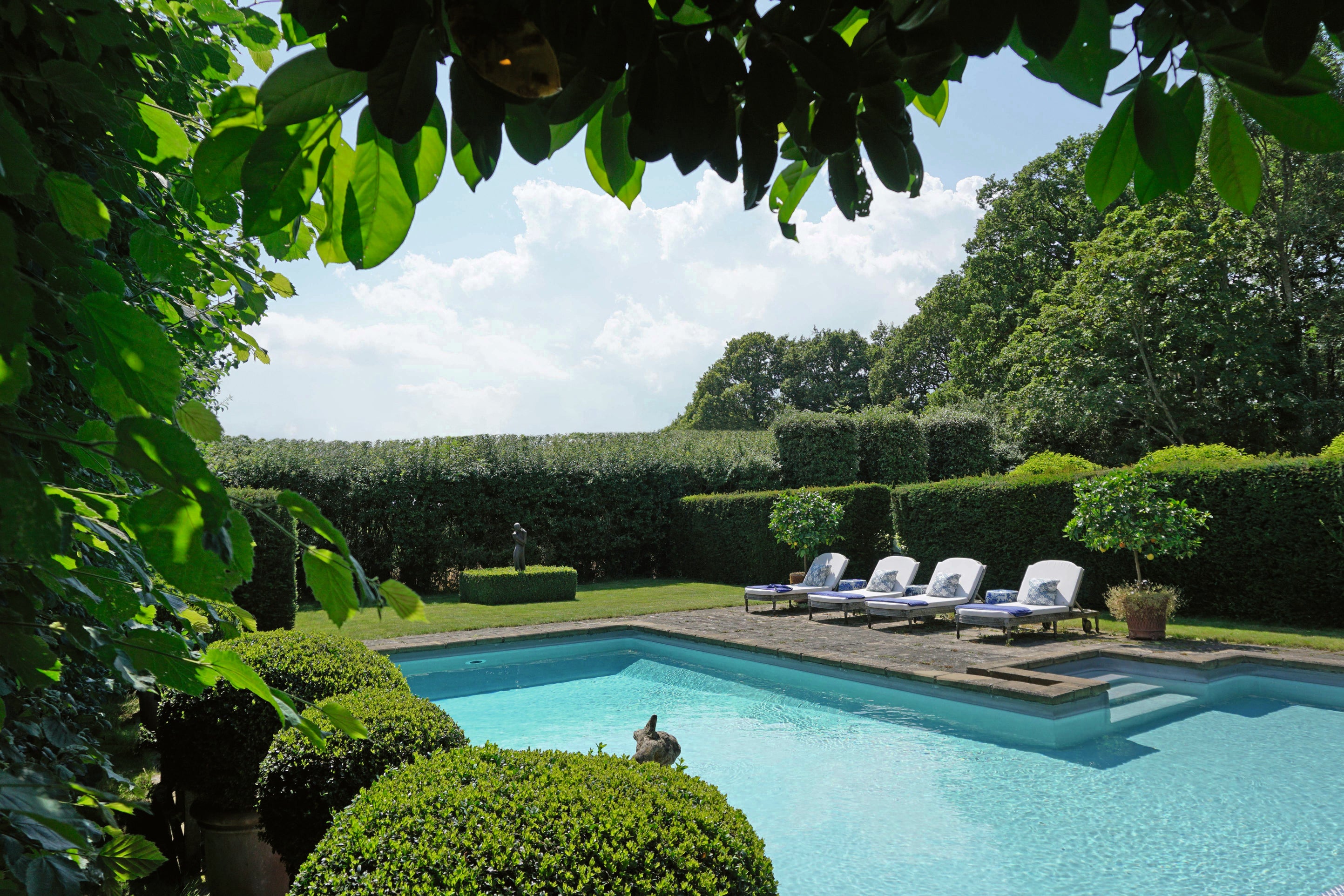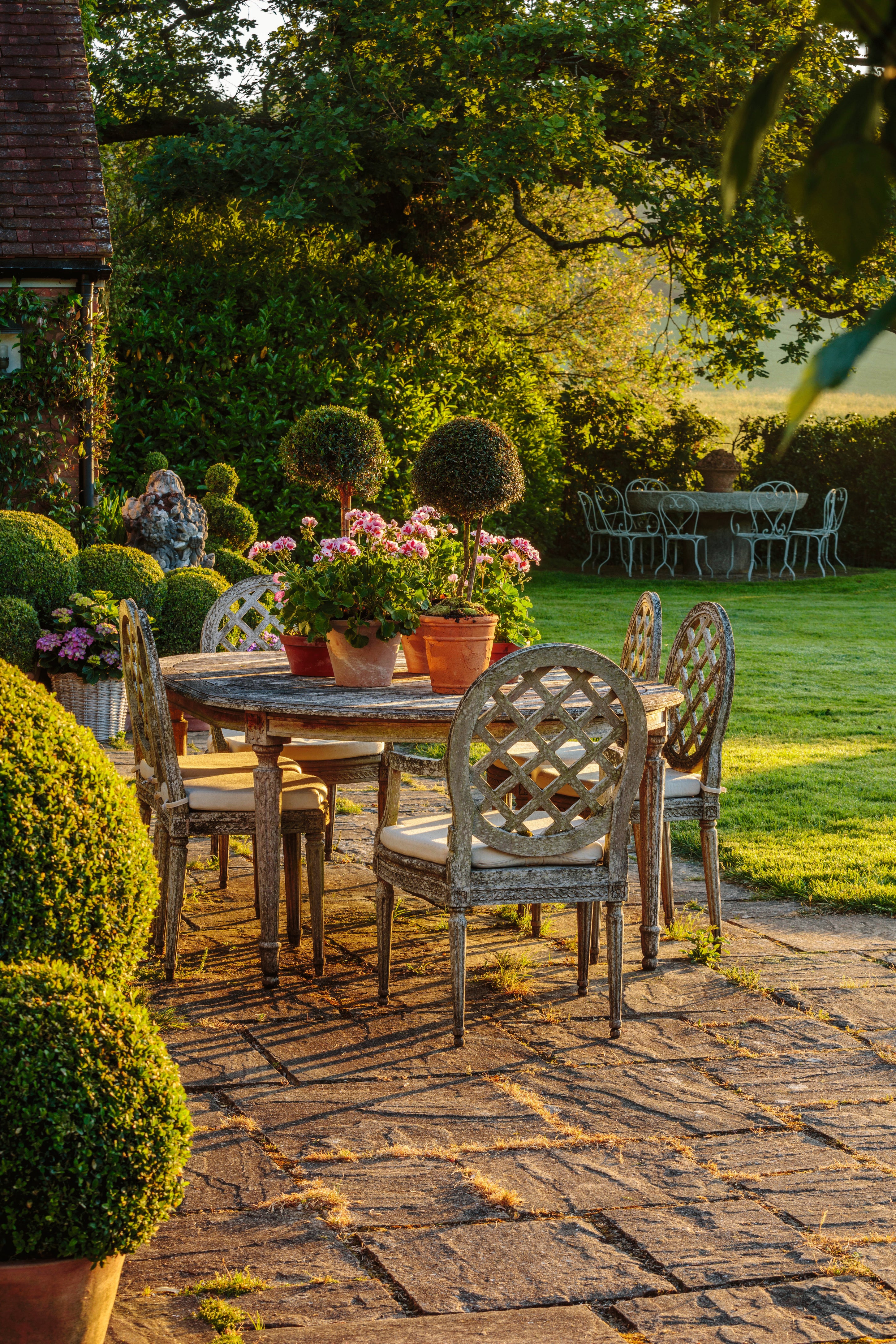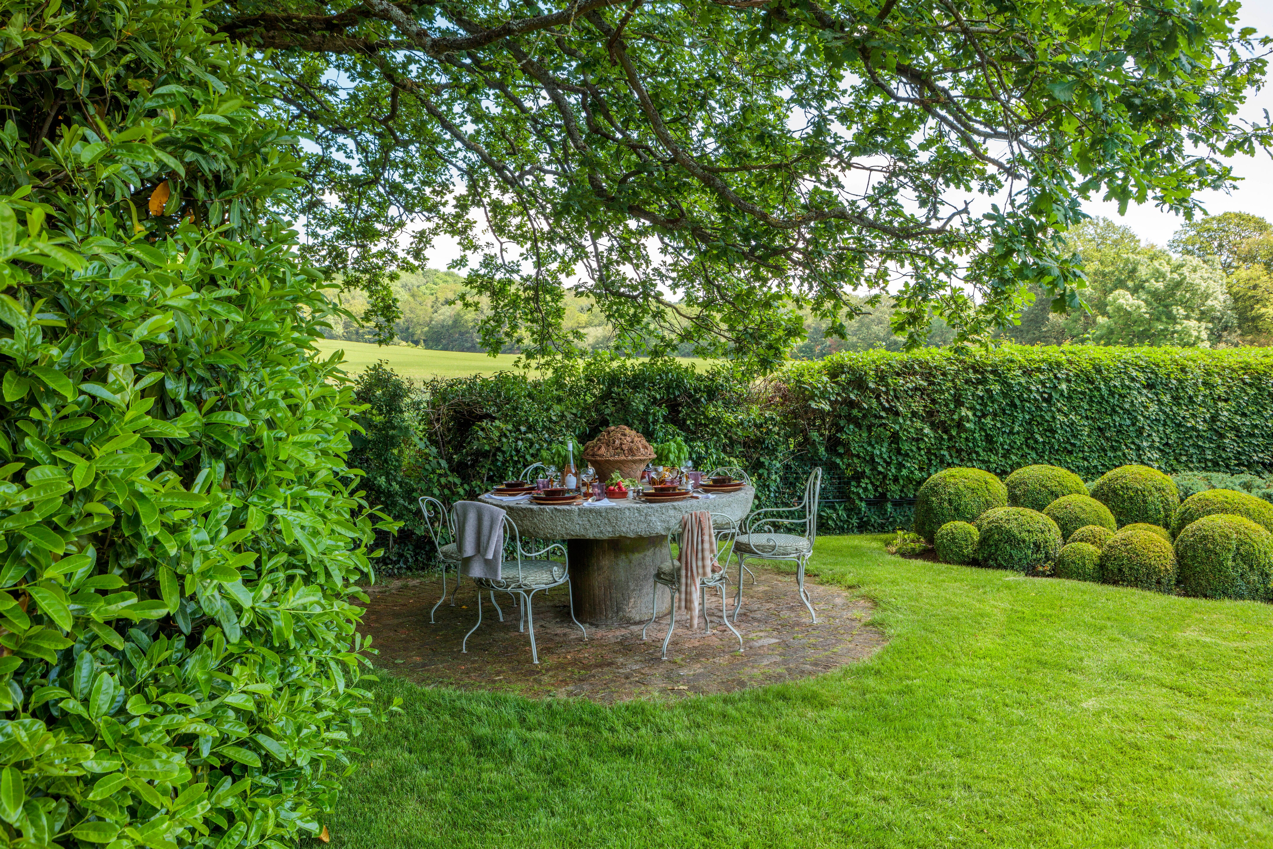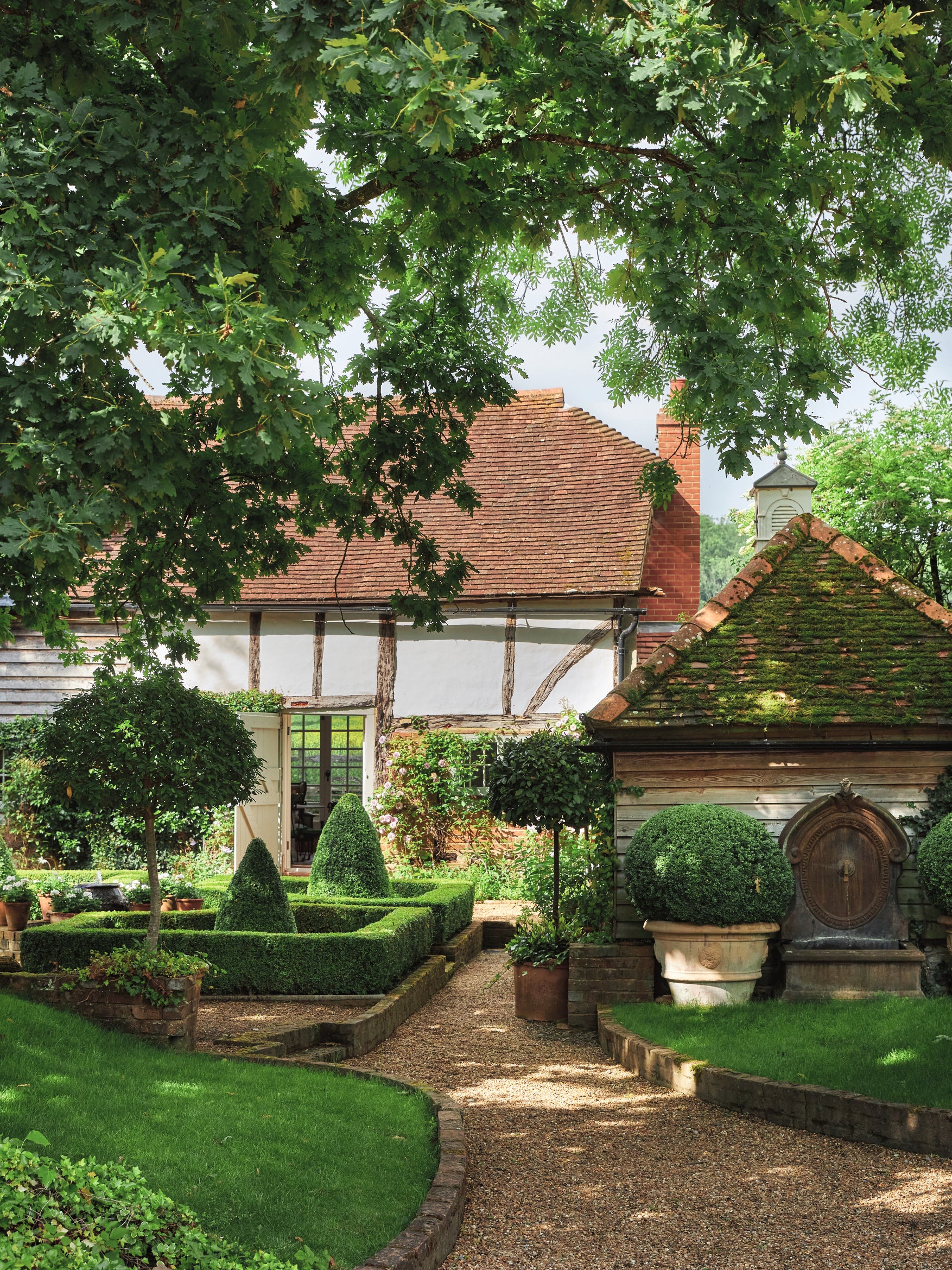 At their West Sussex farmhouse, Paolo Moschino and Philip Vergeylen transformed two-and-a-half acres into a garden that unfolds like a house in the landscape. Drawing from interior design principles, Philip created a series of “outdoor rooms”—structured, distinct spaces that offer different moods and uses, all linked by paths, greenery, artful planting, and subtle water features. Evergreens, topiary, Italian urns, and sculptural box hedges frame the views, while containers, flowering climbers, and seasonal blooms add charm and softness. The result is a garden that’s beautiful from every window—designed to be seen, felt, and enjoyed all year round.