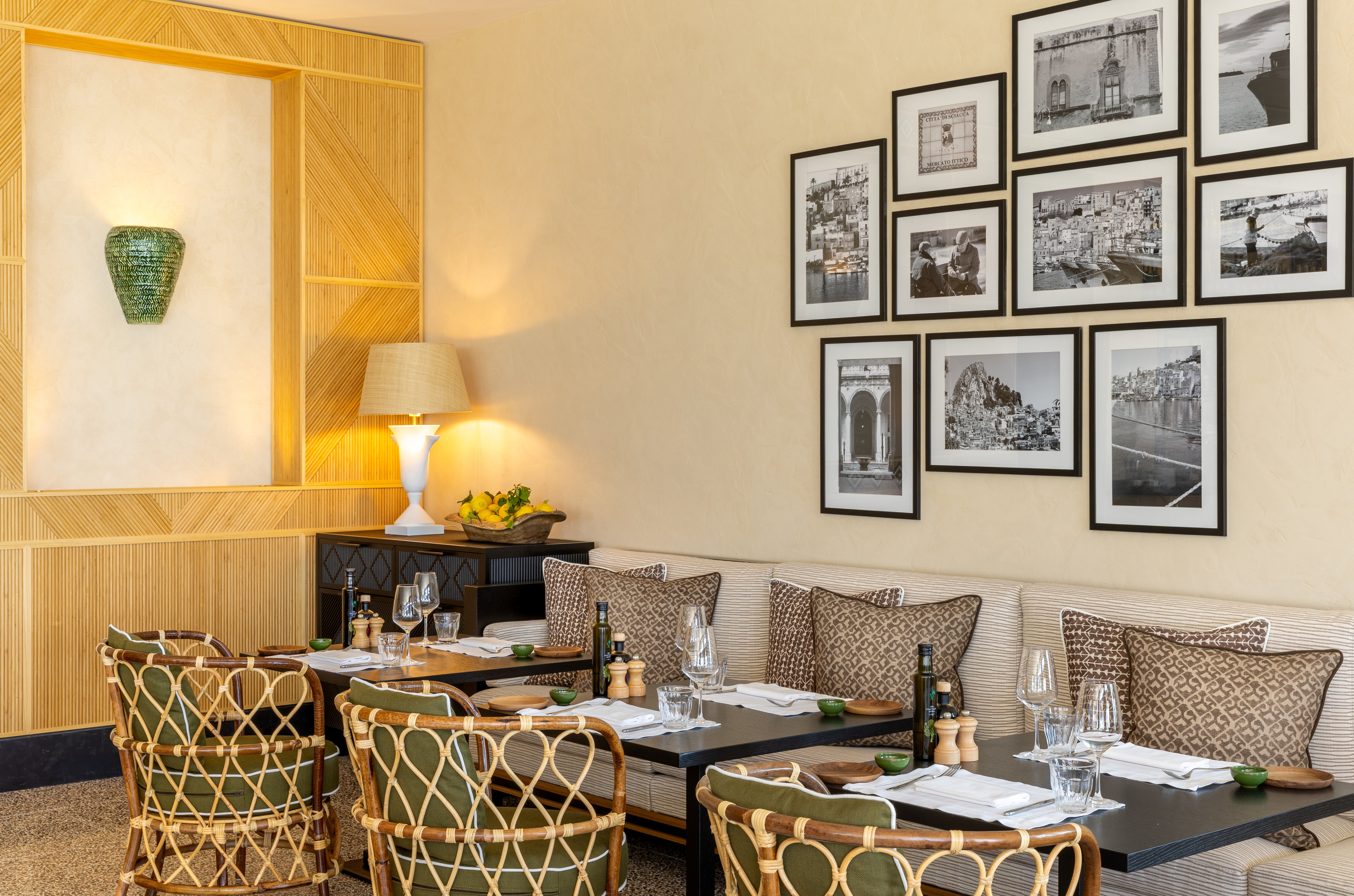 The Secret Garden, Zagara, is newly reborn—bronze sculpture, natural stone, rich woods, and climbing plants around majestic wooden columns evoke intimacy and serenity. New dining destinations, including L’Osteria, Zagara, Buongiorno and the Scirocco cocktail bar, bring together Sicilian culinary heritage and refined contemporary design. A revamped piazza beside the ancient Saracen Tower now pulses with life—shopping areas, fusion cuisine at Nagori, and Liolà’s reopening with local craftsmanship in majolica tiles and terracotta tones add color, texture, and artistry.